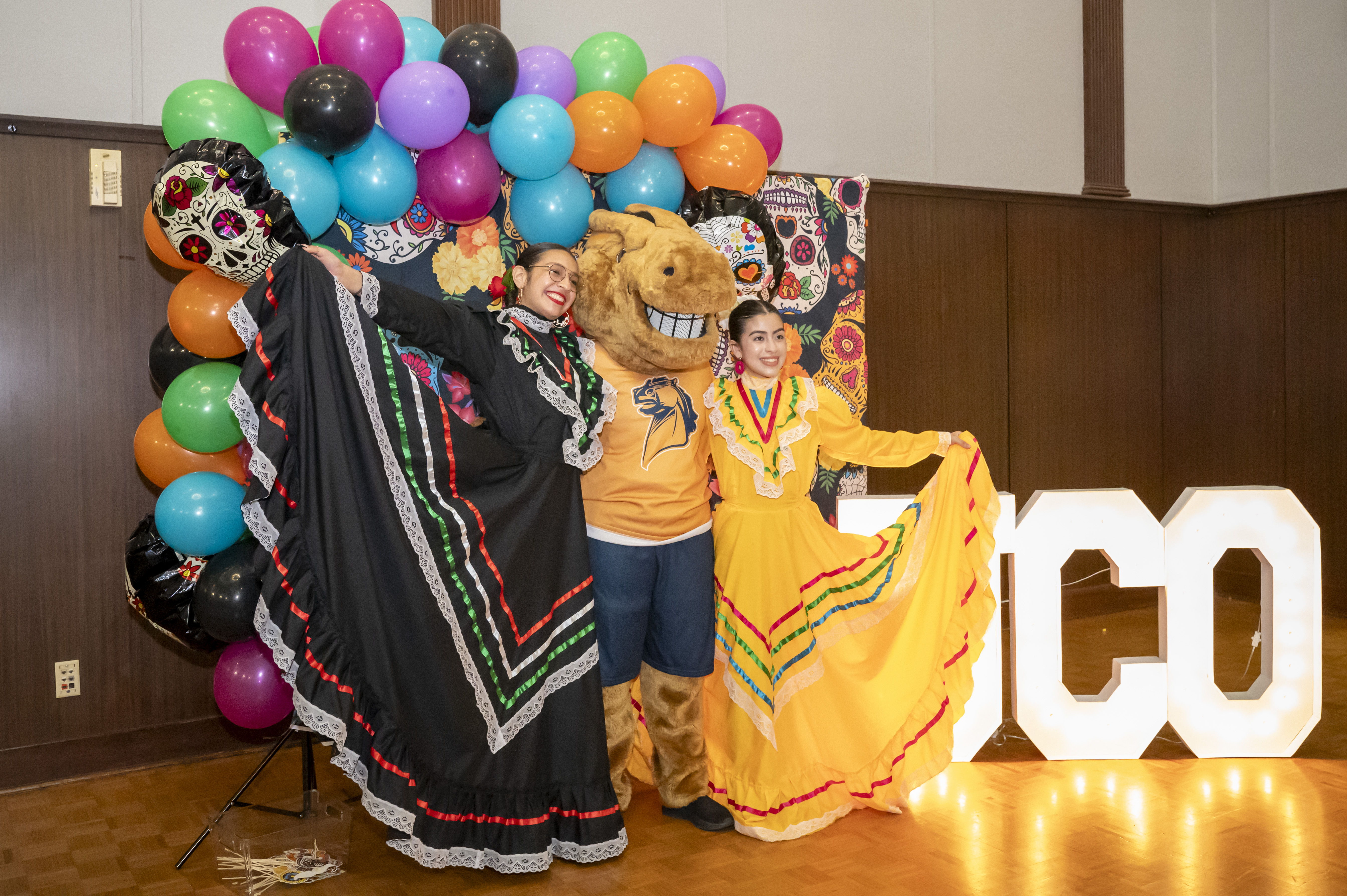 Cutline: The University of Central Oklahoma’s Hispanic American Student Association (HASA) will host its annual Dia de los Muertos celebration from 6-9 p.m., Thursday, Oct. 30, in Plunkett Park on Central’s campus, weather permitting. The family-friendly event is free and open to the public. Pictured, particpants and UCO mascot Buddy Broncho at last year's event.